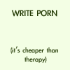 Description: Plain print: WRITE PORN (it's cheaper than therapy!)
