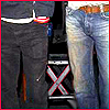 Description: Jared & Colin's legs with something in the background making an X. (Even the machinery thinks you should get together.)